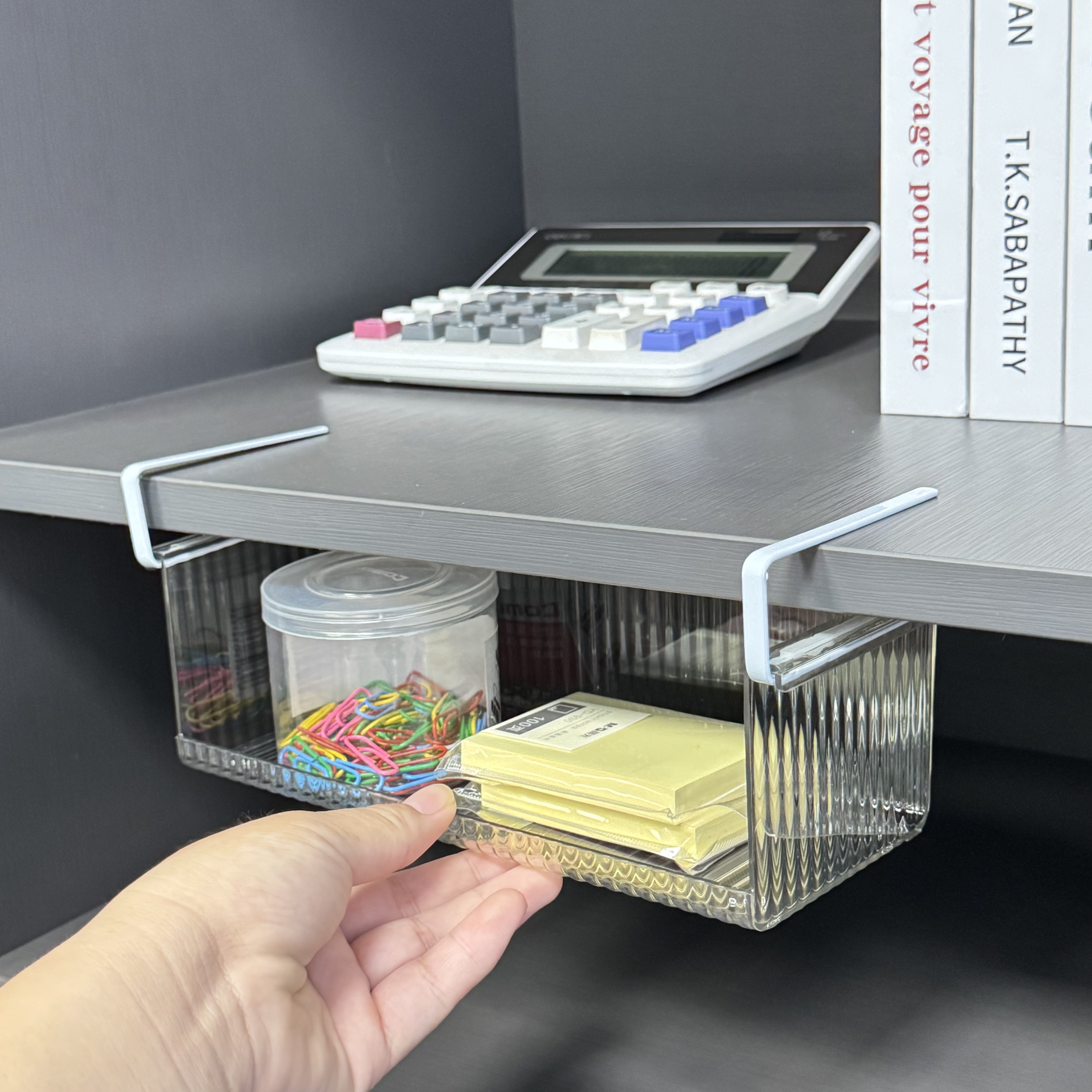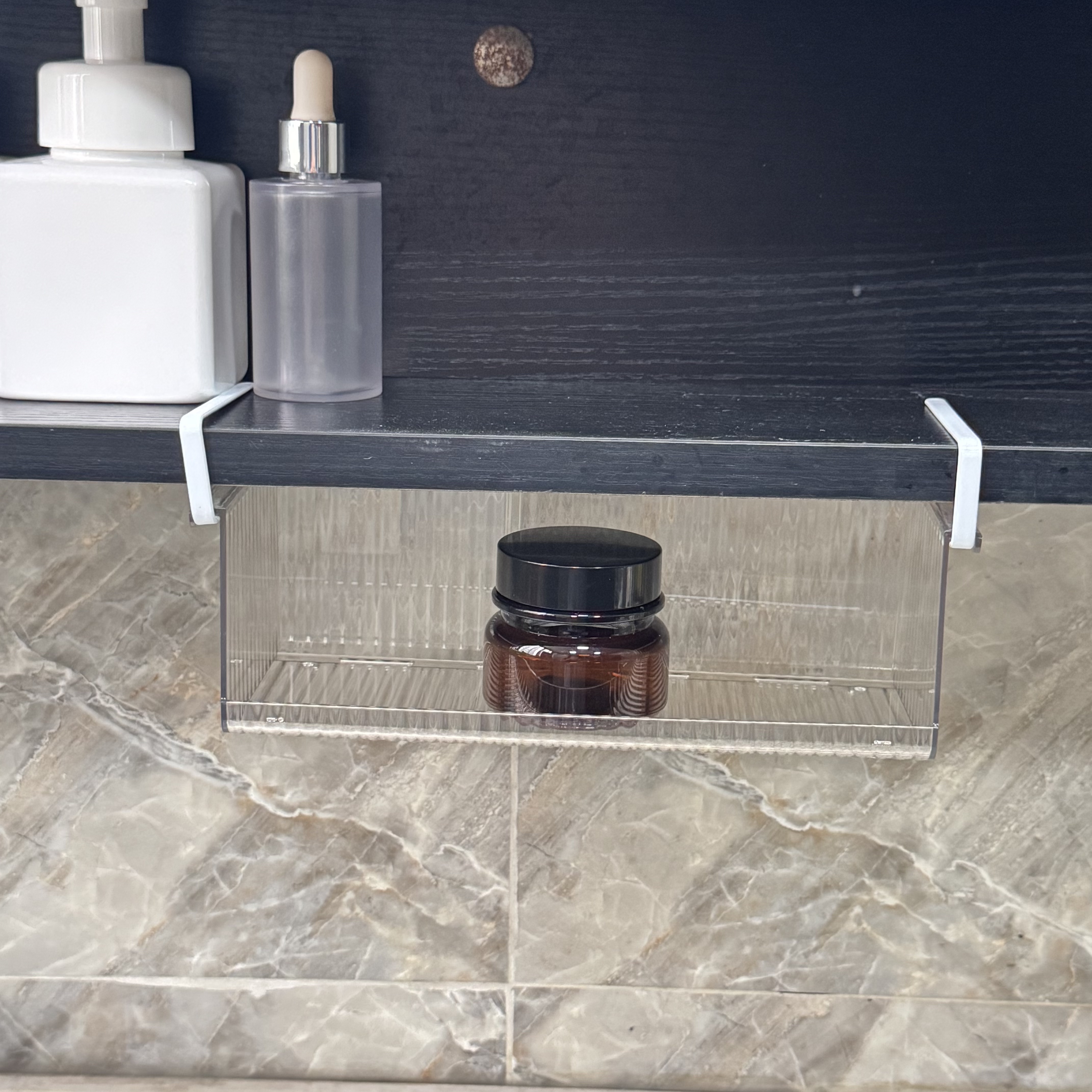 Maximize your storage efficiency with our premium clear hanging storage bin. Designed for modern homes, this versatile organizer fits perfectly under cabinet shelves, mirror cabinets, or desks, turning unused air space into valuable storage.