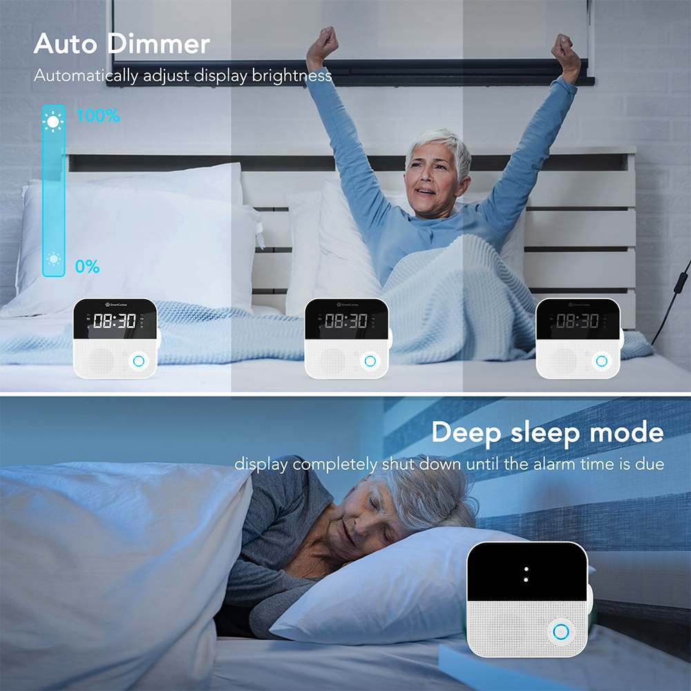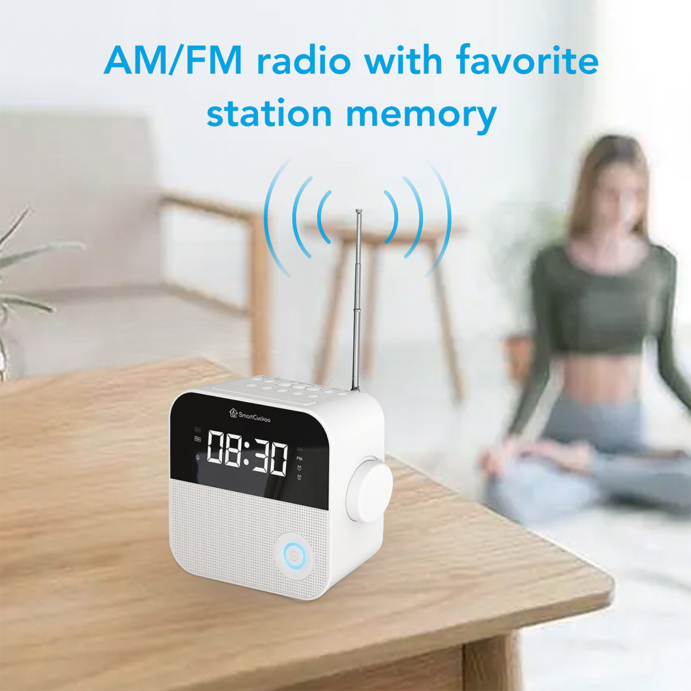 SMARTCUCKOO Smart Alarm Clock Radio—WIFI enabled Talking Clock with AM/FM Radio—White Noise Temperature-humidity Sensor Personal Voice Medication Reminder. iOS/Android App and Remote Control!