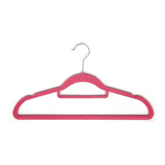 This sturdy clothes hanger is constructed of an ABS body and a metal hook. The clothes hanger is wrapped velvet-flocked fabric to prevent slipping. It comes with an additional tie hanger and two indents for added functionality.