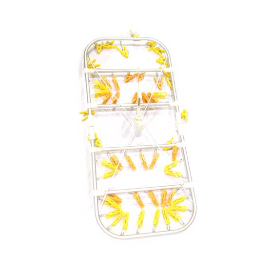 Dry your washed clothes with this high-quality clothes hanger. The sturdy aluminum frame is fitted with quality plastic pegs. The well-constructed hanger can be used for a long time.