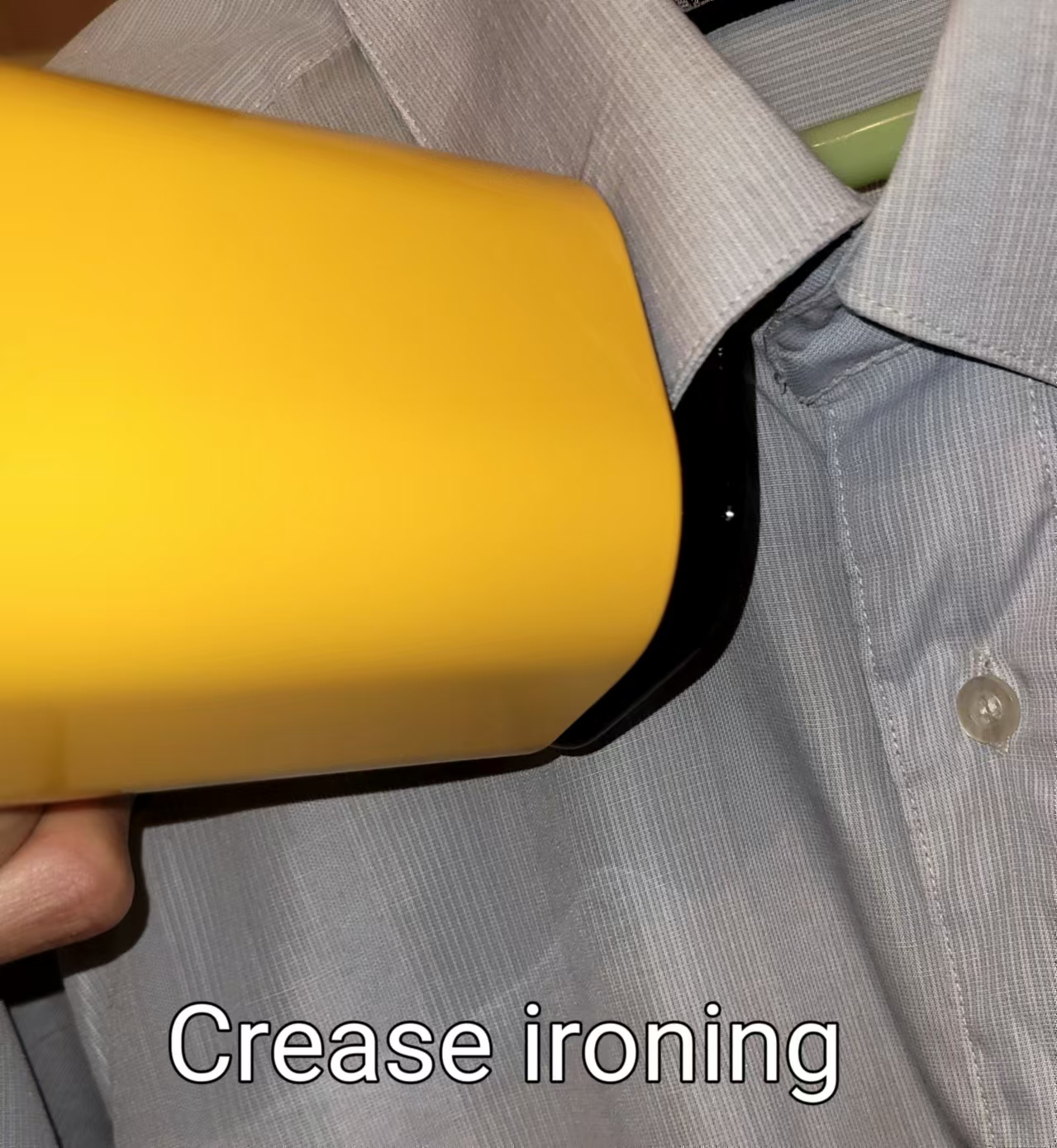 Remark: Creases can be pressed into fabrics. Your dress shirt will look crisp if you use our compact clothes steamer.