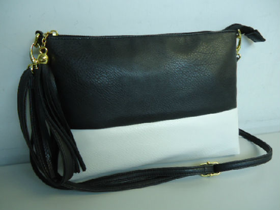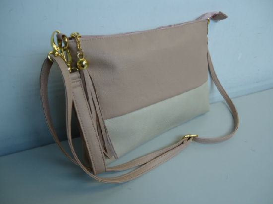 Colour block clutch bag zip closure, tassel puller, wrislet handle, removable shoulder strap