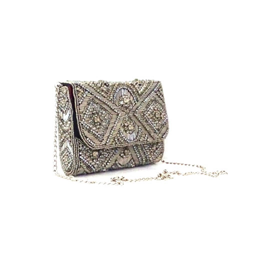 With a delicate silvery chain, golden beaded embellishments and diamante crystals, this exquisitely pretty bag will add a warm sparkle to eveningwear. The soft color means it will go with almost everything. This bag is made with excellent workmanship and attention to detail.