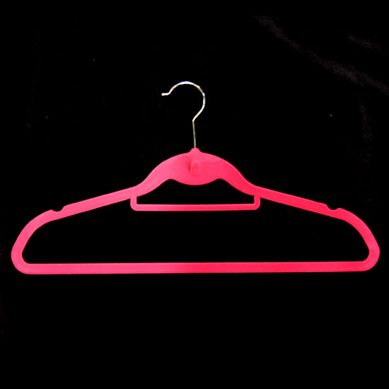 As shown is a clothes hanger coming with a plastic frame and a metal hook. The shape of the frame is designed especially for suits. A holder is added at center for holding ties and accessories.