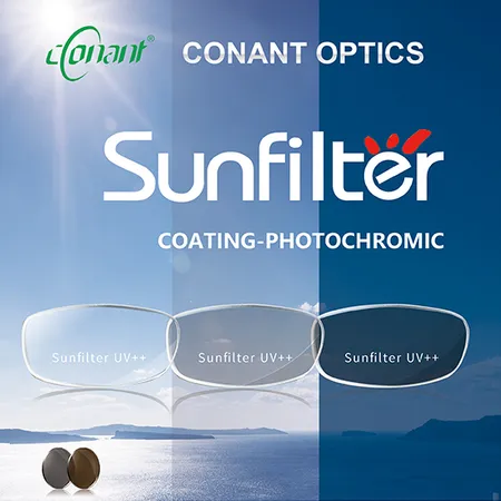 Imported monomer makes Sunfifilter UV++ coating photochromic lens highly sensitive. It is colorless transparent indoor and changes according to UV strength outdoor. The stronger UV color is, the darker lens color is. Light transmittance will increase quickly when coming back indoorside from outdoor activities. Free scene shift provides customers with comfortable experience.
