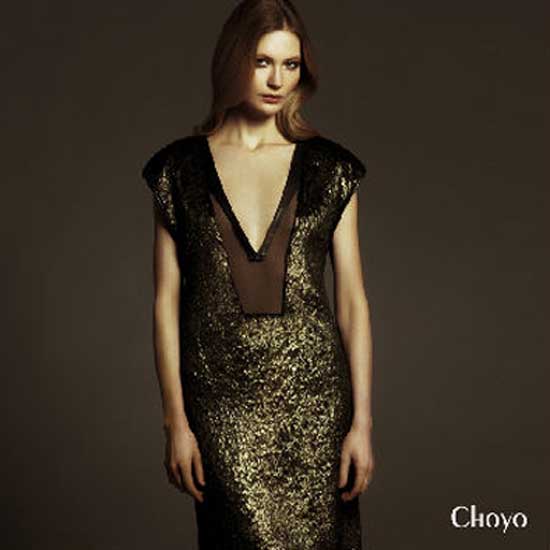 This is a cocktail dress that is made of golden silk. This shiny dress is designed with a deep V neckline, which echoes with the curve of the body. This gorgeous cocktail dress looks graceful and fashionable.