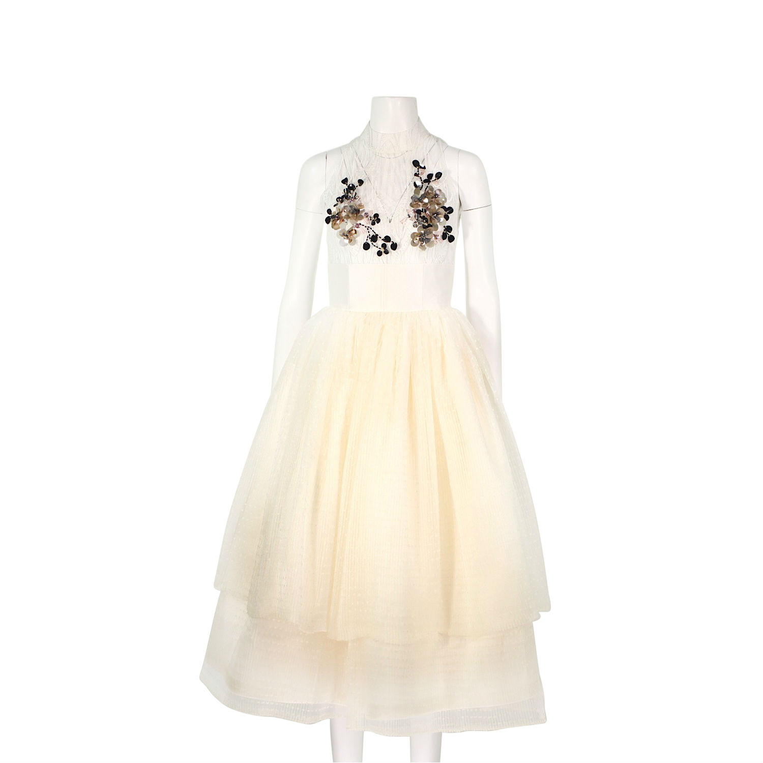 Impress whoever lays eyes on you with this sassy lace gown. Flashing your flesh with a see-through bodice, the sleeveless gown boasts to be a beauty to behold with luscious laces sweeping elegantly throughout your feminine curves. Rounded off with sweet dotted details along the organza skirt, it boasts to inject a subtle note of dainty flair to your dreamy prom look.