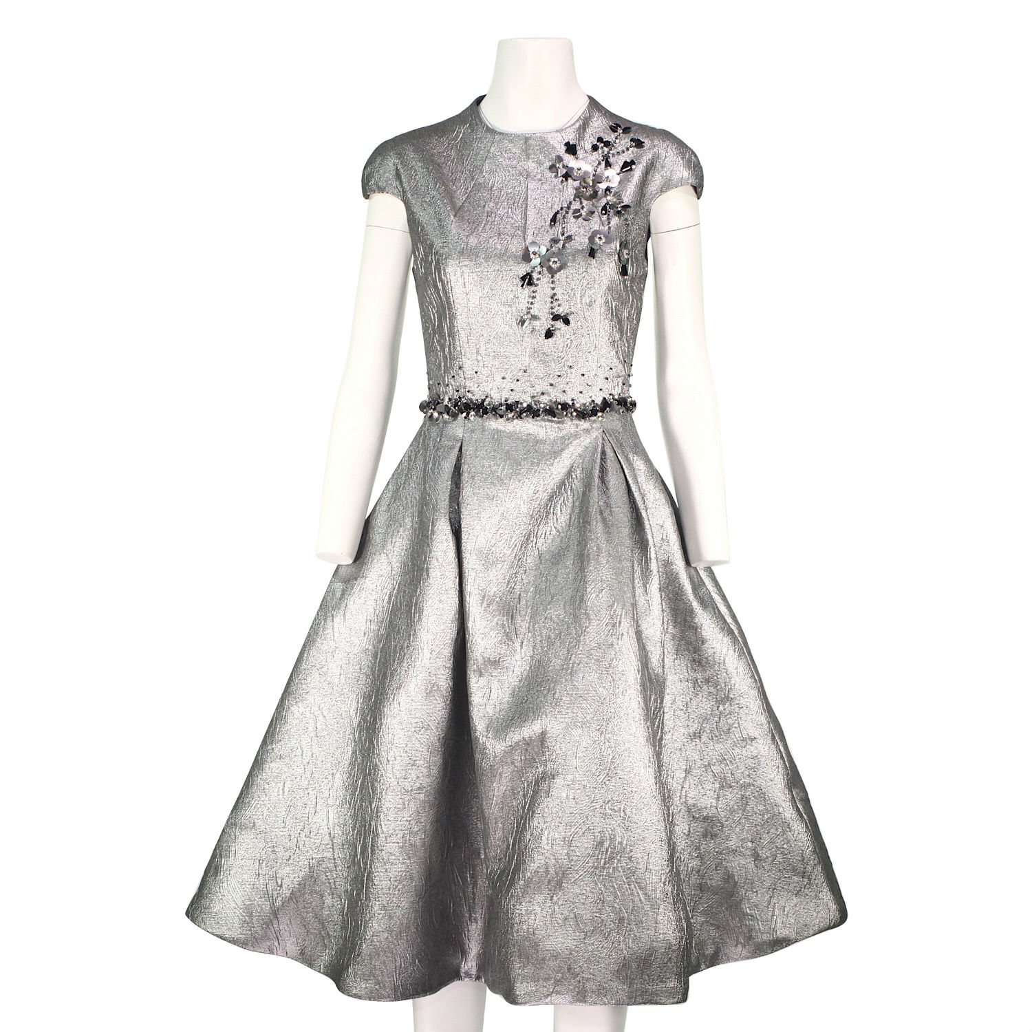 Make a grand entrance at the spring cocktail party with this knee-length dress. Bloomed with an abundance of sequin flowers throughout the round neck bodice, the ravishing gown runs flatteringly throughout your feminine silhouette and cinches at the narrowest part of your body with a sequined waistline. Round it off with a pair of matching black heels to lend a classy finish to your elegant ensemble.