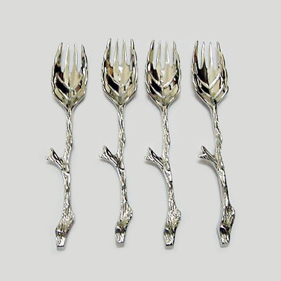 This cocktail fork is meticulously crafted for a refined look. The well-polished, silver cocktail fork is artful and unique. It will definitely make a fudge cake, fruit tart, macaroon, etc. even more appealing.