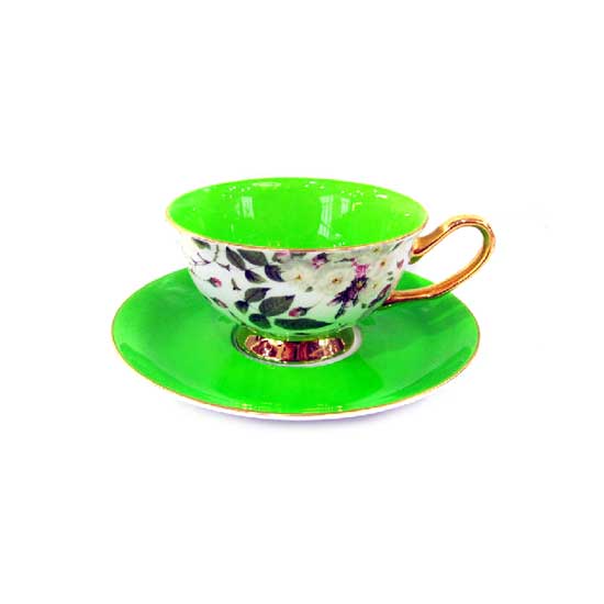 This is a coffee cup that comes with a matching saucer. It boasts a dainty and elegant design with excellent craftsmanship. Its exterior is masterly crafted with vivid and realistic flower patterns in brilliant colors.