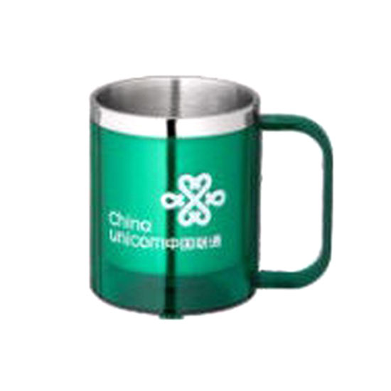 Printed with a white logo, this coffee cup features a green finish. it can hold up to 220ml of fluid. The large handle allows easy and firm grip.