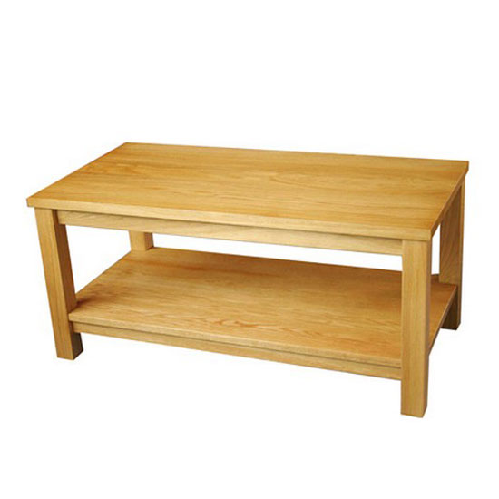 This coffee table is integrated with a shelf for added utility. The whole piece is built out of quality and durable materials. It also retains natural grains which look pleasing.