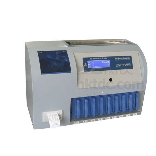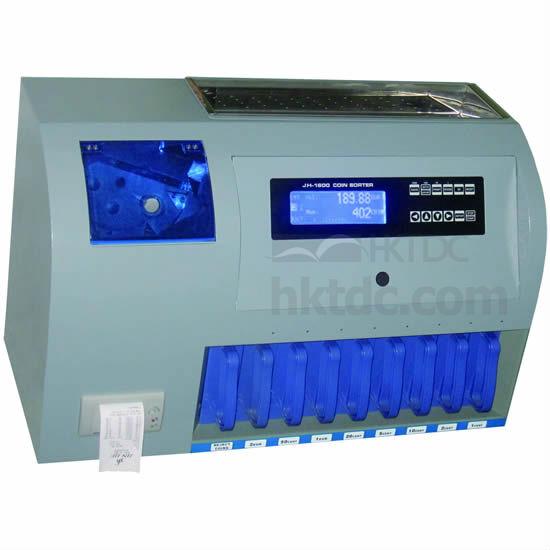 The JH-1800 heavy duty coin sorter can count and sort coins, as well as detect false coins.