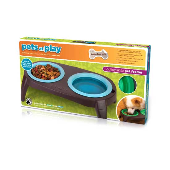 This is a collapsible pet feeder coming with two bowls. It is designed in contrasting colors for a stylish touch. The durable construction enables it to serve for a long time.