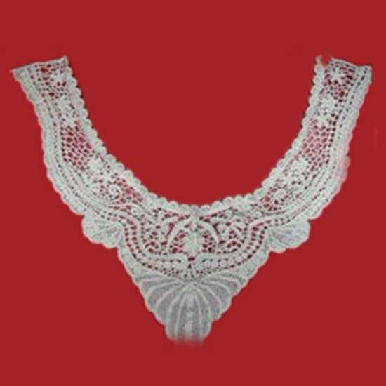 This fancy collar trimming features sophisticated lace motifs. Made of quality cotton, the collar trimming is durable and breathable. Add a feminine touch to your fashion design with this lace collar trimming.