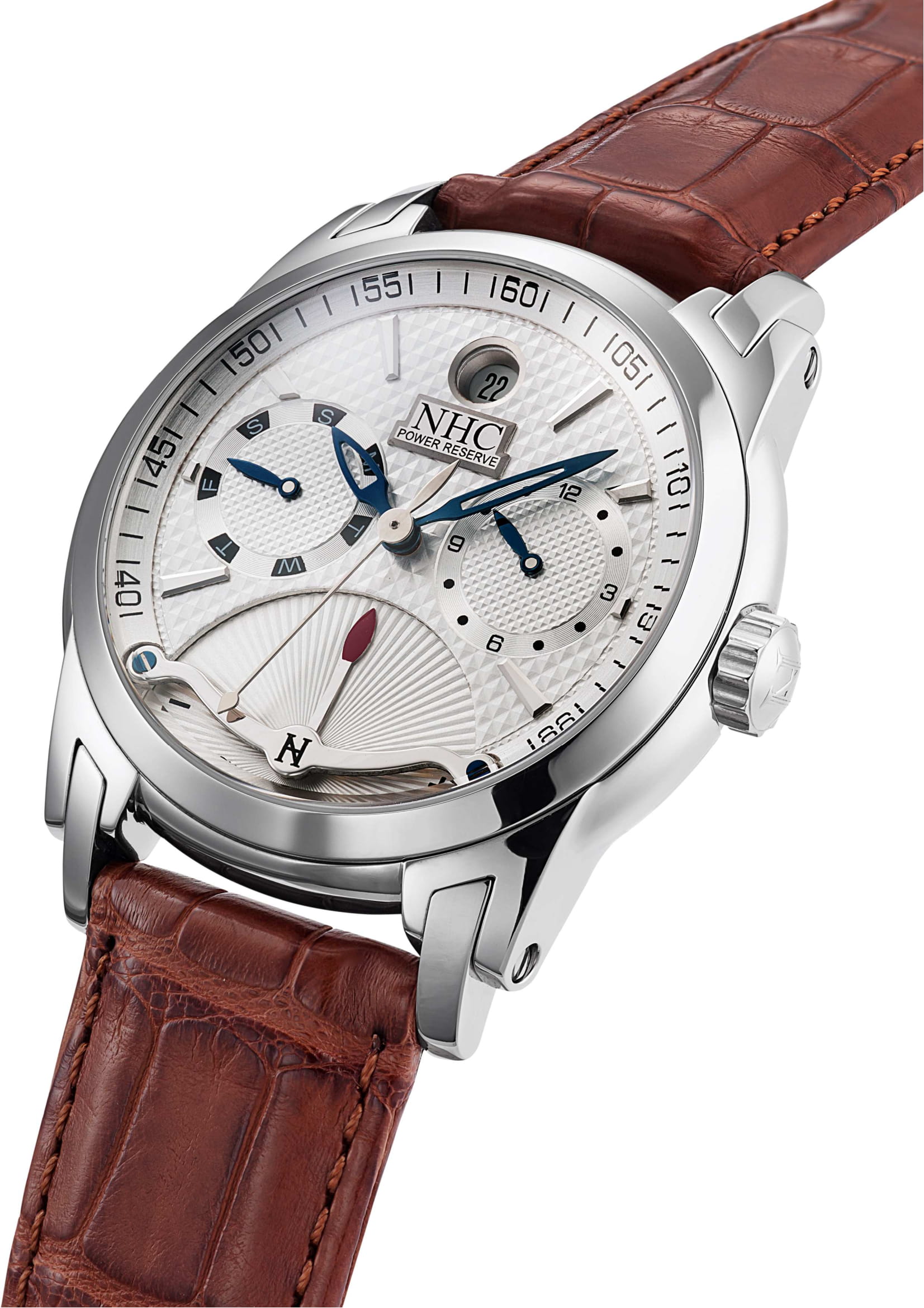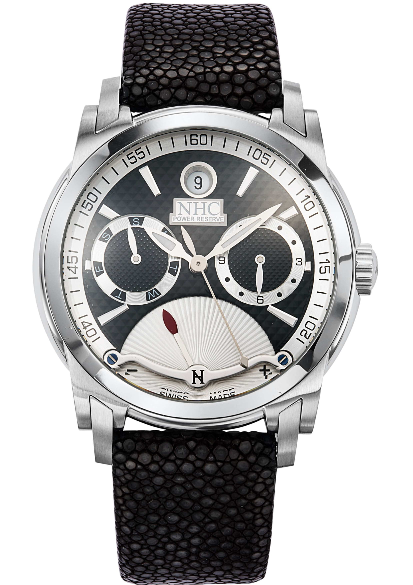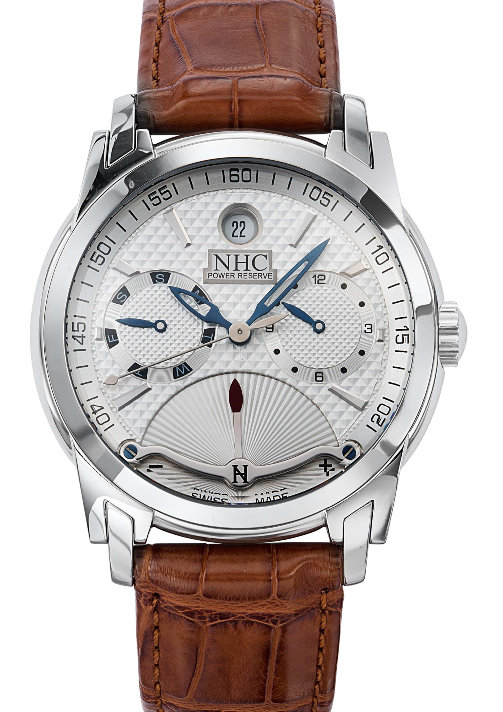Mechanism designed and manufactured by Vincent Calabrese. Dual Time, Day & period of the Day, period of the week, Power reserve.