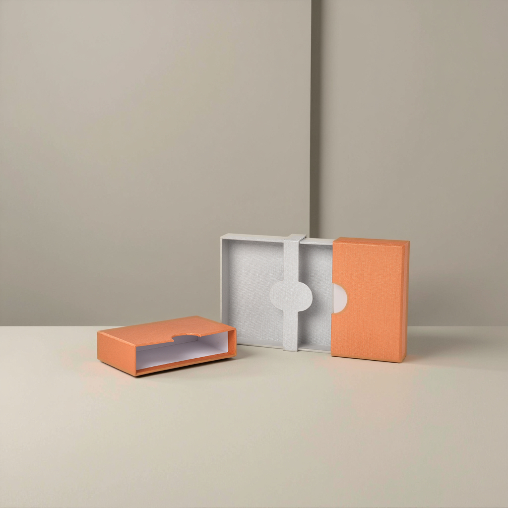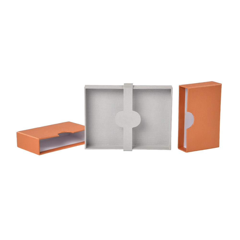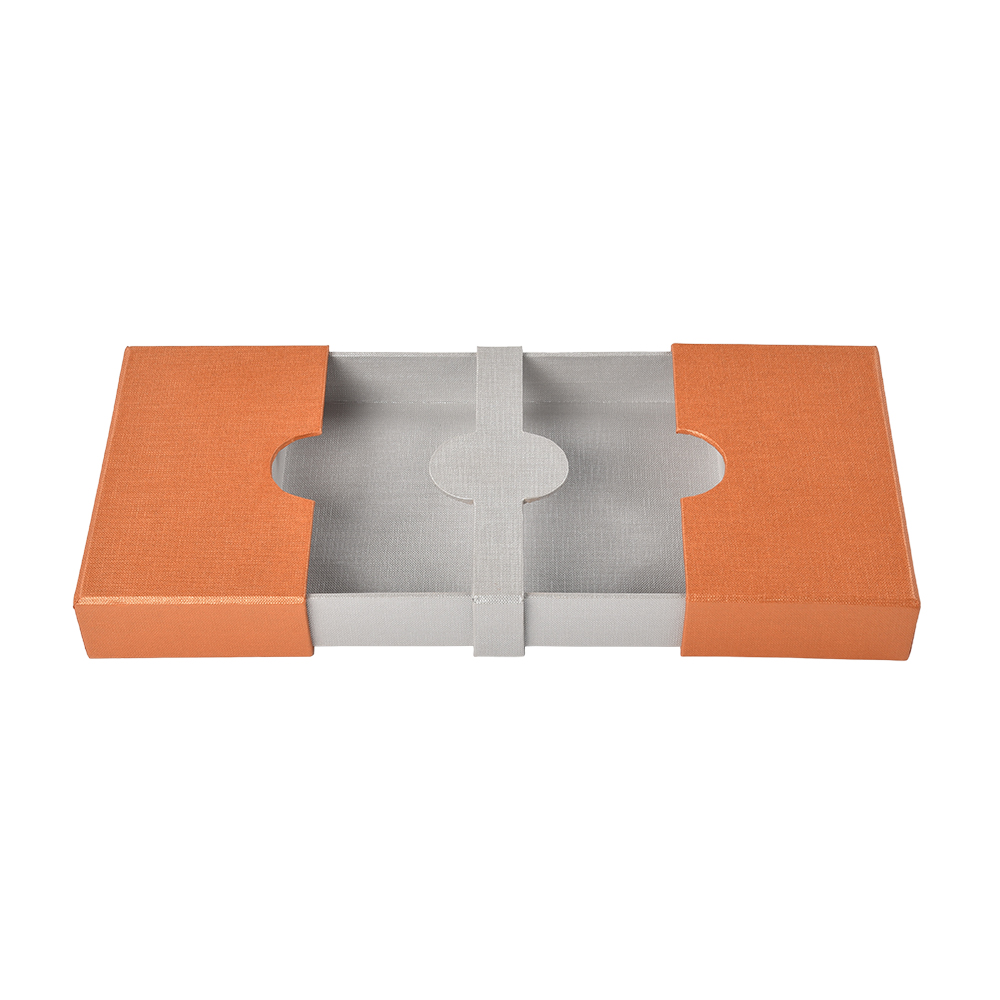 This gift box is inherently creative, featuring a drawer design that can be pulled out from both sides. The opening and closing method is novel and convenient, making it easy and smooth to take out and put in items. The box body is made of paper material with moderate hardness, which combines lightness and durability, and can securely store various gifts. The sample is made of orange and white, with a striking color contrast design that catches the eye and exudes a sense of fashion. Supports all-round customization. The exterior can be hot-stamped or embossed with exclusive logos. The color, surface pattern, material (such as adjusting the thickness of the paper), and overall size can all be adjusted as needed. It is suitable for various scenarios such as festival gift-giving and brand packaging, making the gift more unique and thoughtful.