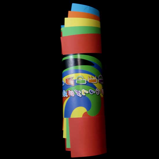 Showcased here are pieces of color paper that can be used for multiple purposes. They can be folded into different shapes, such as a heart, an aeroplane or a star for decoration. The paper can also be cut and stuck together as handicrafts.