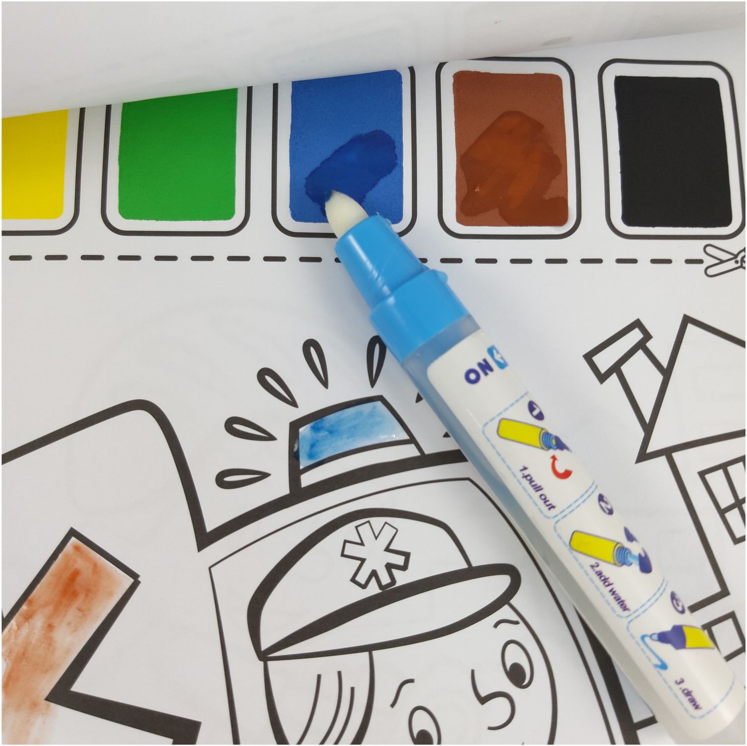 - Comes with a magic pen that brings a watercolor-like effect to regular painting and coloring.