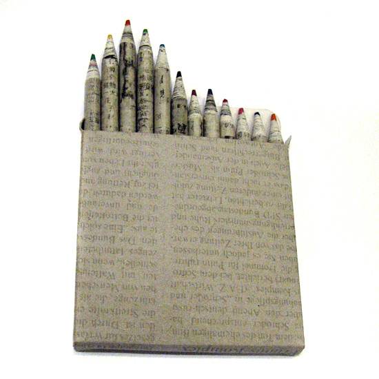 These are colouring pencils which has newspaper-like pencil surface and case. The set is made of recycled material.