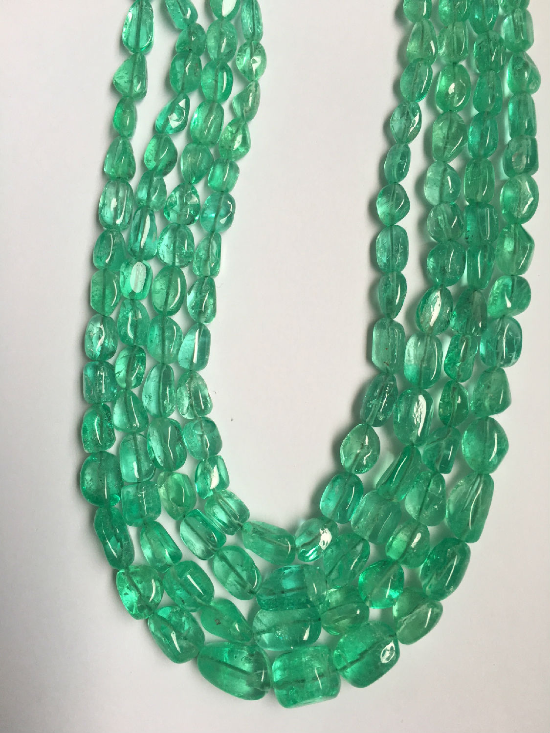 Columbian Emerald Mani Beads with luster and color in all sizes. Size available from 4 to 10.5 mm.
