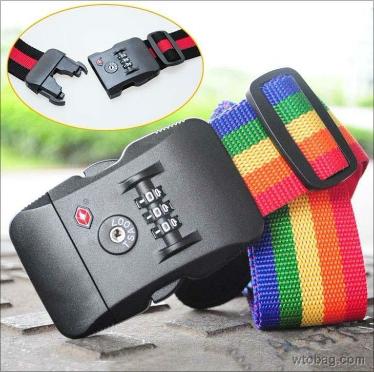 • Brightly colored belt cinches around your suitcase to keep it shut and helps you spot your luggage in crowded baggage areas