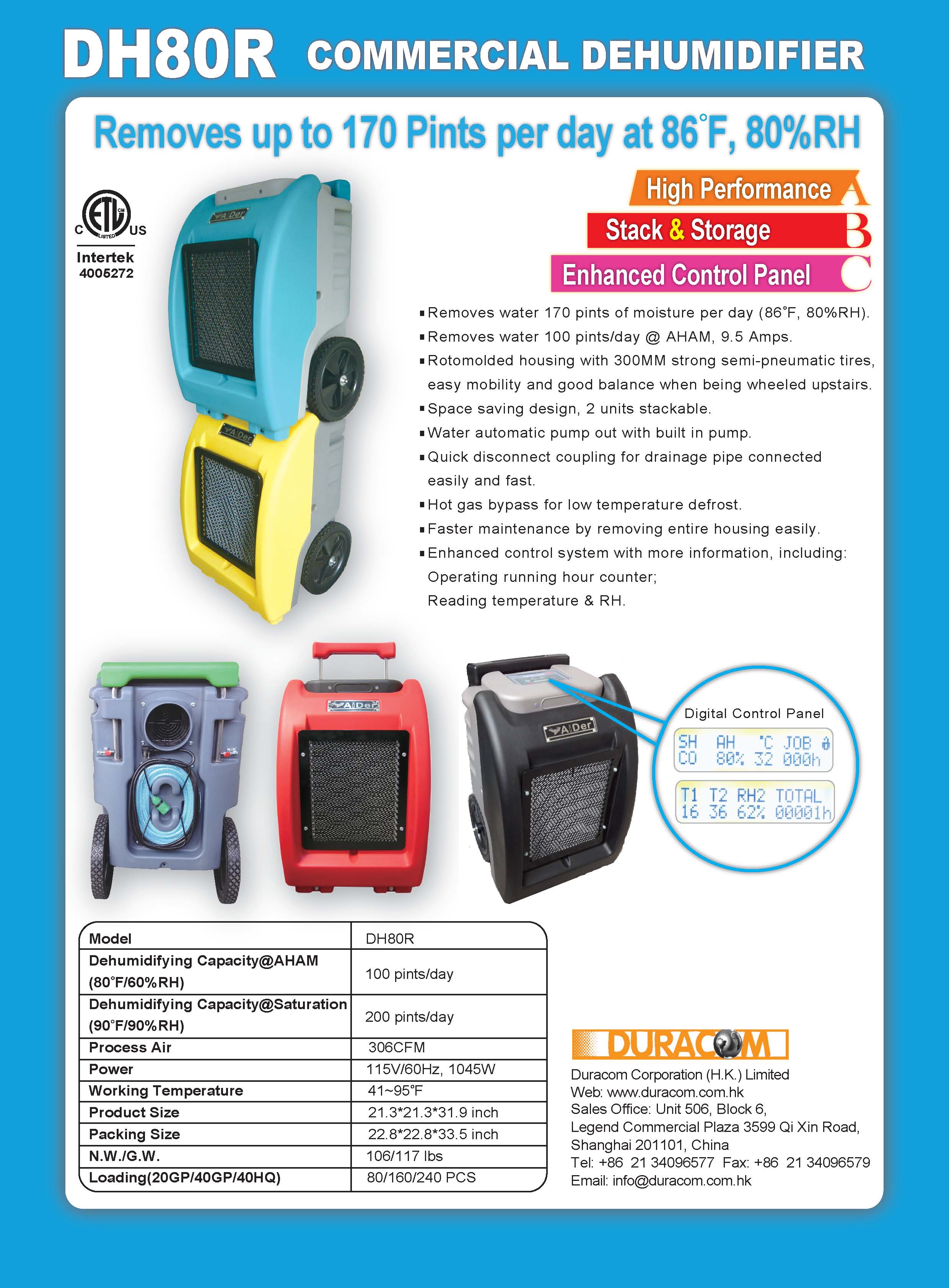 Removes 65 liters up to 80 liters of moisture per day (30℃, 80%RH)