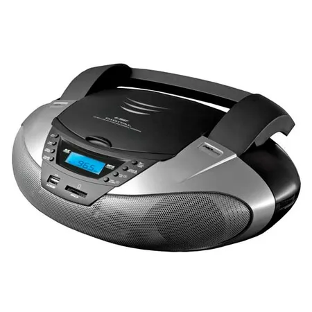 This dynamic compact disc player is designed with a pair of acoustically balanced speakers, promising exceptional sound quality. It is designed with a large LCD display with blue backlit for easy reading. Featuring a sturdy handle, this portable compact disc player is ideal for on-the-go use.