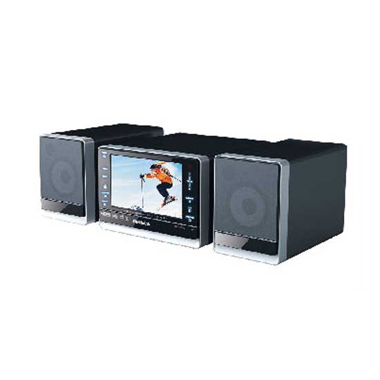 This micro multimedia system features a 9-inch TV in the center. The system also features DVD playing and Bluetooth functions. The compact system occupies little space and is easy to store.