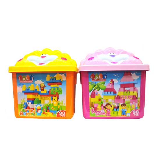 This highlighted construction toy features a forest-themed design. Each box comes with 98 pieces of building blocks for kids to create their masterpieces. A lion-shaped box is included for better organization.
