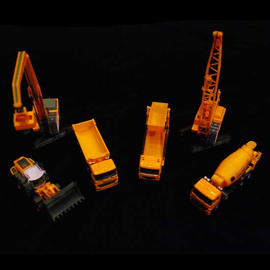 Showcased here is a collection of model construction vehicles. All toys are made with handsome details in nice colors. The realistic structure of each toy can attract both kids and toy collectors.