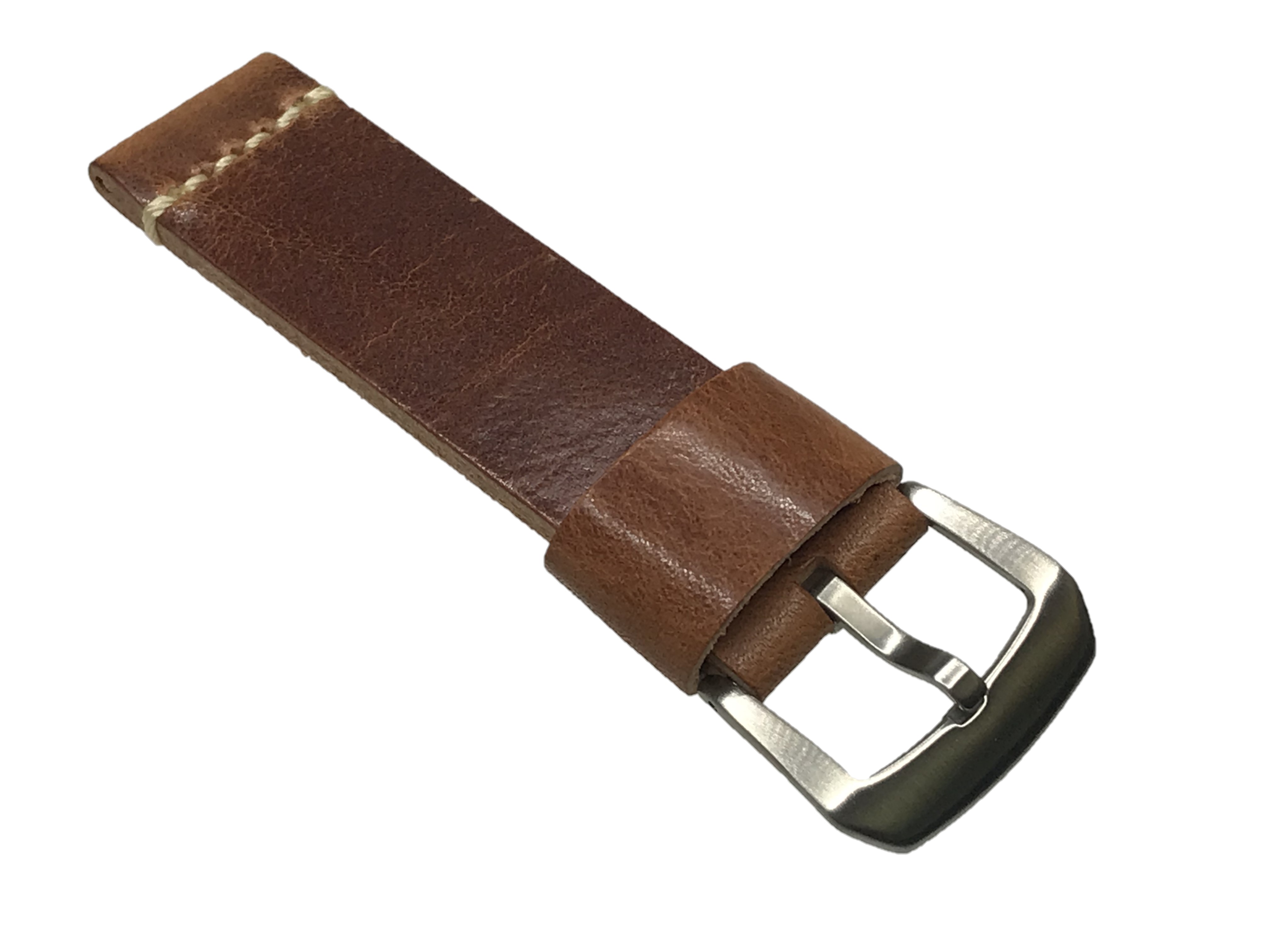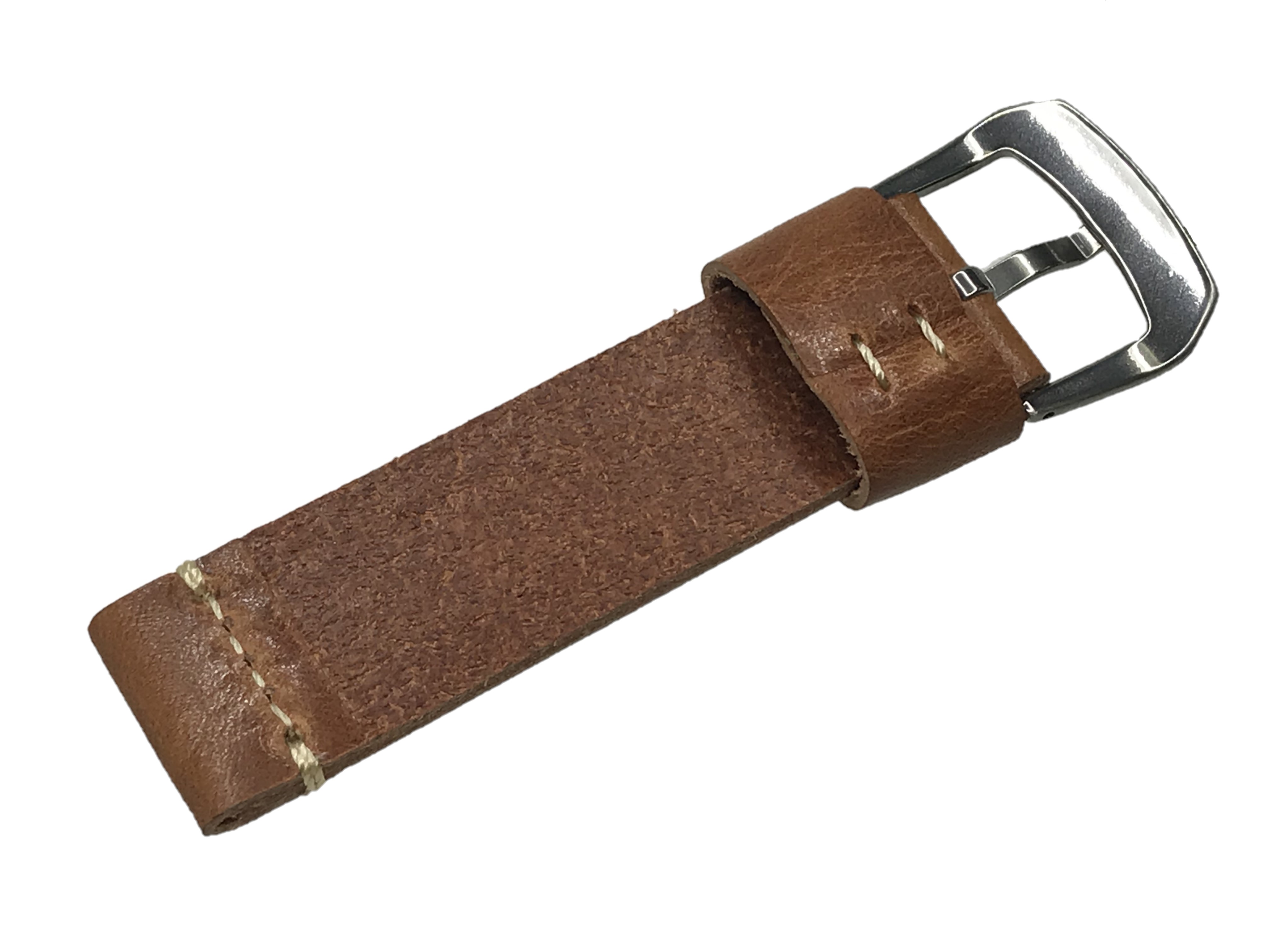 Watch strap in cut-edge with simple beige stitching