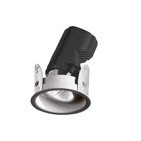 Aluminum round, adjustable, 3-1/2" high efficiency regressed dimmable LED downlight allowing up to 30° tilt and 359° internal rotation. Adjustable and lockable from below the ceiling. May be installed with a low profile ultra-thin flange or flangeless trim in configuration for insulated, non-insulated and remodel (non-IC) ceilings.