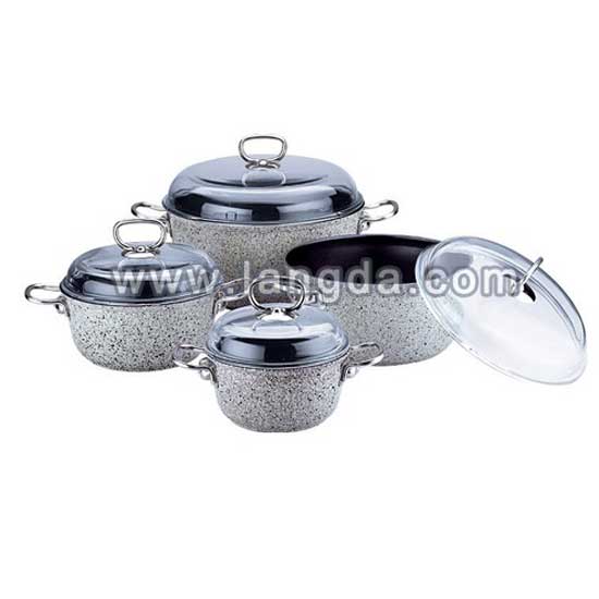 This set of cookware includes cooking pots of different usages and sizes. The pots are finely crafted from durable carbon steel, with handles made from stainless steel. These cooking pots make great additions for modern kitchens.