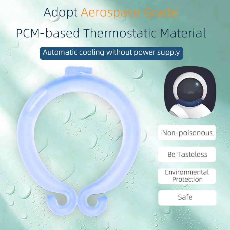 The cooling scarf is very cool even if it is not put in the refrigerator. The phase change material physically cools down.