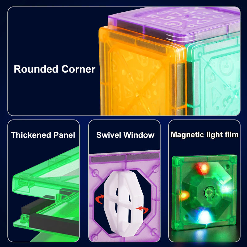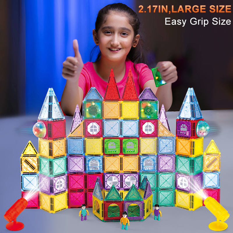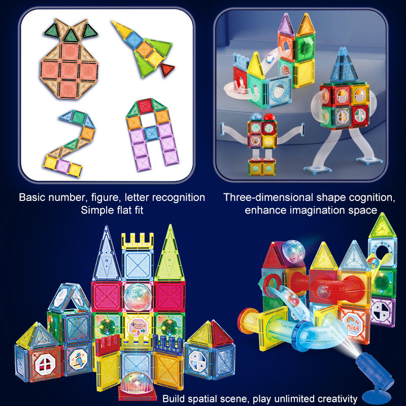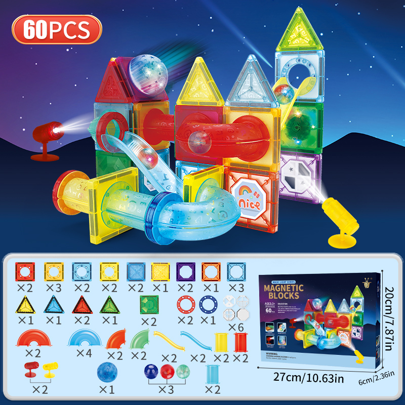 Cool light magnetic piece pipe toys 60pcs Children's jigsaw puzzle DIY assembly educational magnetic building block toys