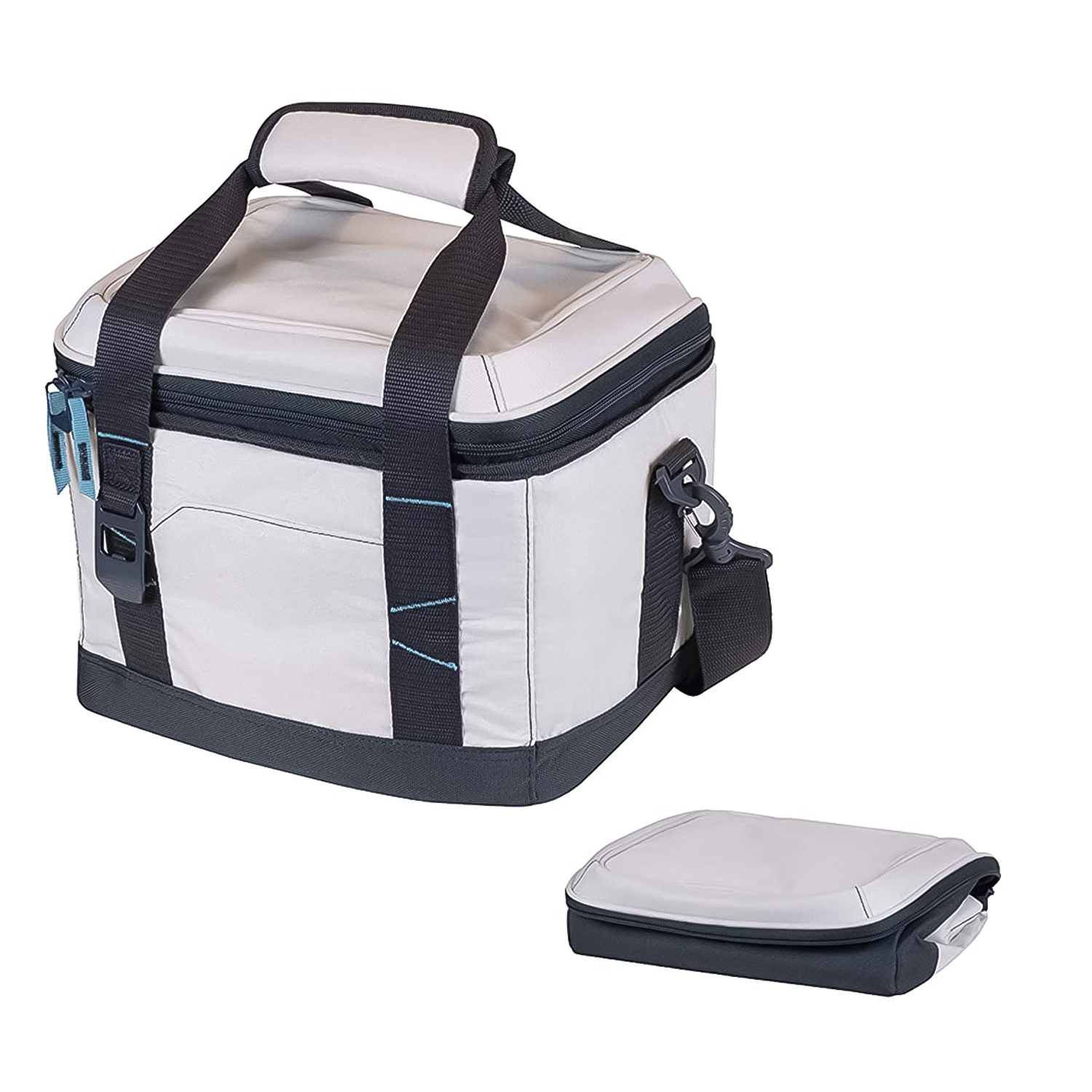 - Insulted cooler bag with zipper and hand carry and shoulder strap.