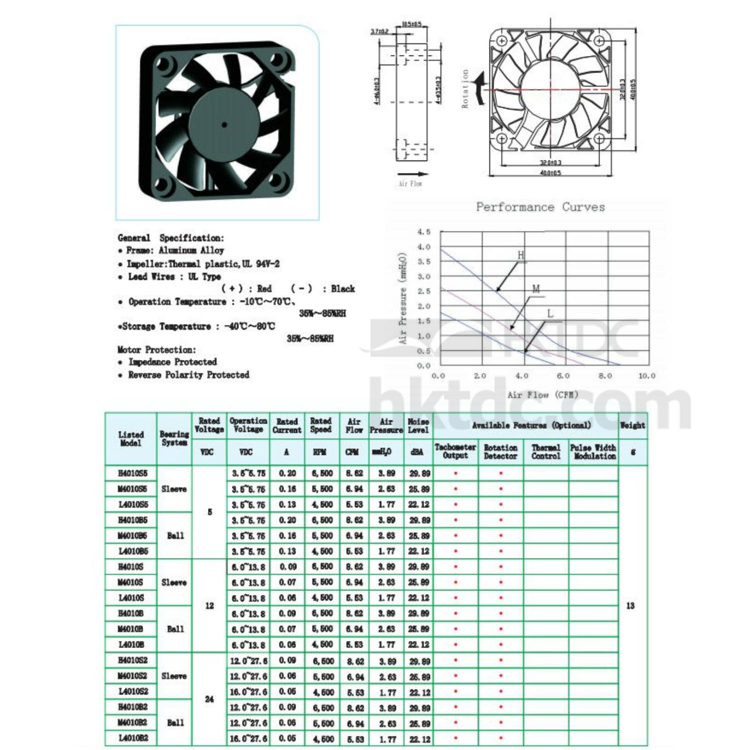 - Lifespan expectancy: 50,000 hours at 20°C, 2 balls, 30,000 hours at 20°C, sleeves
