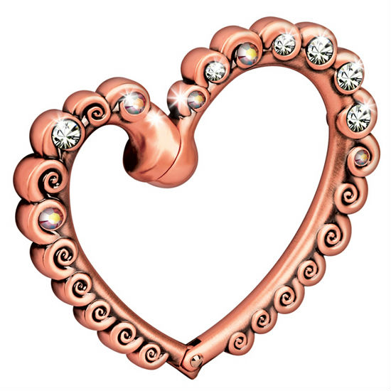 Heart shape w/ antique ornament design decorated w/ white & rainbow stones