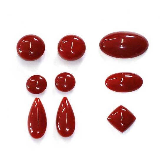 These red Mediterranean coral cabochons feature round, oval and drop shapes. The coral cabochons have been finely polished with a smooth, glossy finish. The size of the coral cabochons ranges from 3mm to 30mm.