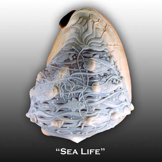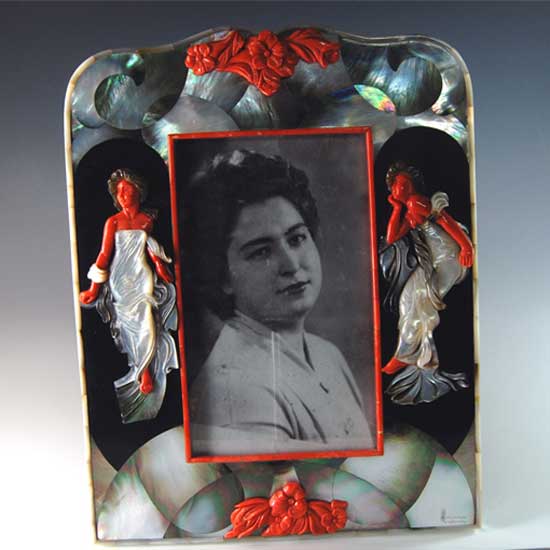 This is a series of coral decorations with detailed craftsmanship. The series comes with a coral carving, a coral and shell photo frame and a shell lamp. The salmon coral carving is accented with 18K gold ornaments and an onyx base for added style, whereas the photo frame is crafted with coral and shell. The hand-carved Sardonix shell lamp will surely add an artistic accent to your desk.