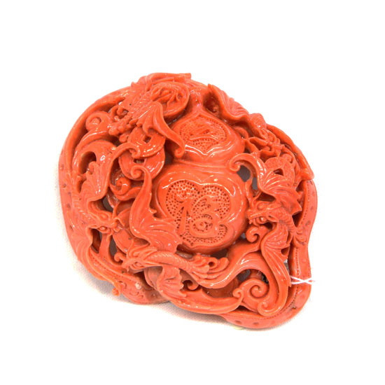 This is a coral pendant that comes in a bright red color for a sense of vitality. It is finely crafted with refined carving details. This coral pendant will add a glamorous touch to your outfit.