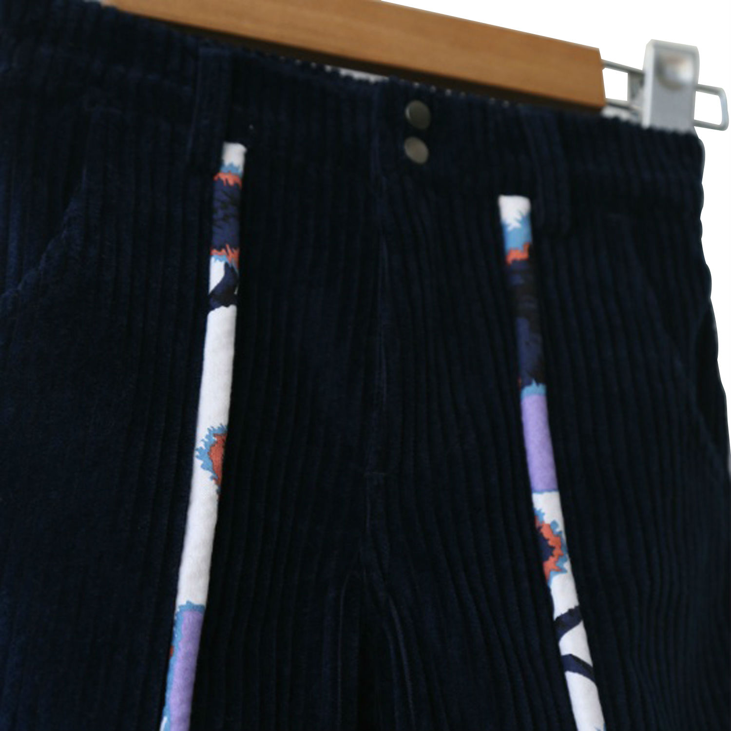 Corduroys pant with 3D strings patchwork at the front. Easy-to-wear and mix and match with different styles.
