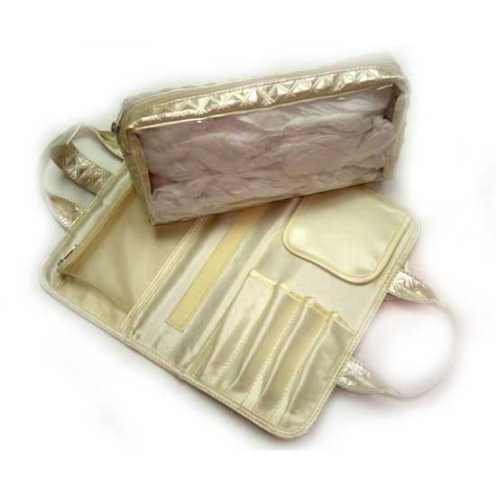 Highlighted here is a cosmetic bag that flaunts a golden tone. It features a zipped closure, a detachable bag and 4 brush pockets. This golden cosmetic bag is made of PU fabric, ensuring durable use.