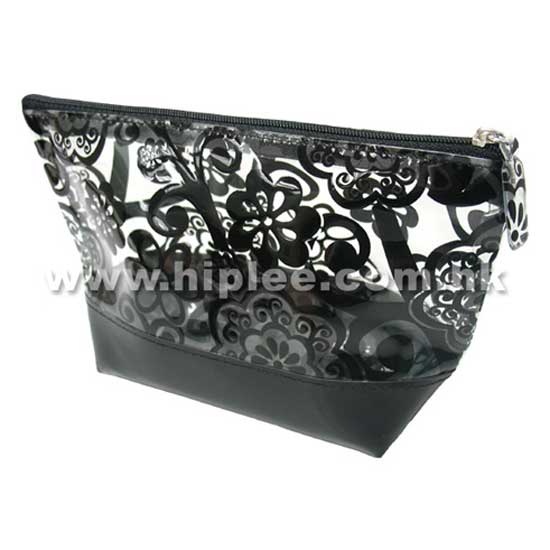 Highlighted here is a cosmetic bag made of PVC. It features a zip-up closure for secure storage of your items. The floral patterns convey a touch of modernity.