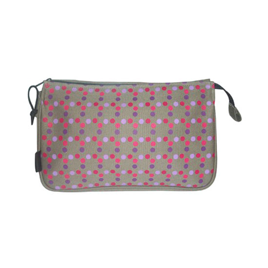 This cosmetic bag comes with a colorful dot motif. With a top zipper, this cosmetic bag is easy to use. This slim cosmetic bag is ideal for traveling.