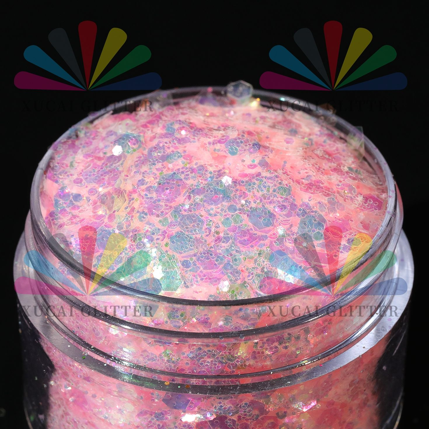Cosmetic Grade Holographic Chunky Glitter Mix Safe PET Hexagon Flakes for Nail Art