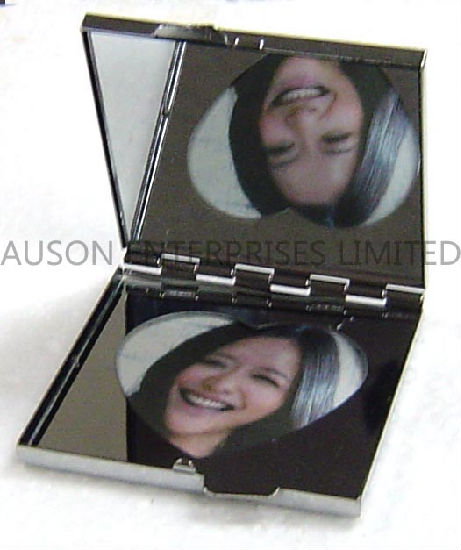 Metal cosmetic mirror, pocket mirror, compact mirror.