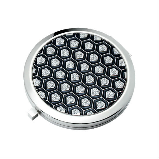Shiny Sliver Plated with white crystals and epoxy in black color (honeycone pattern)