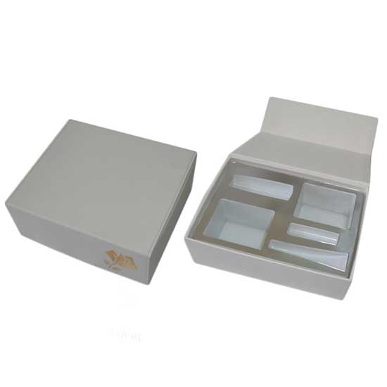 Shown here is a cosmetic packaging box in an elegant white color. It is characterized by the hot stamping logo. This cosmetic packaging box is elegant and highly durable.